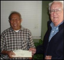 Fr. Rudy Lacerna (left) and Tom Walters President of the Serra Club; Presented Fr. Rudy a Gift Donation from the Serra Club. Thank you for your service! We all enjoyed our visit with you. |